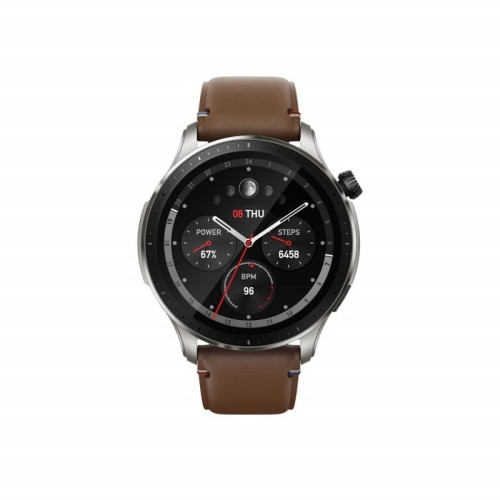 Large 1.43″ HD AMOLED Display. The Amazfit GTR 4 is the industry’s first smartwatch with anti-glare technology on the glass bezel cover, and the AMOLED display has an anti-fingerprint coating to keep your watch looking pristine. Turn your watch into your personal health and fitness dashboard, and see the data that’s vital to you in HD clarity.