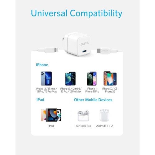 • Anker 20W Cube Charger with USB C to Lightning Cable