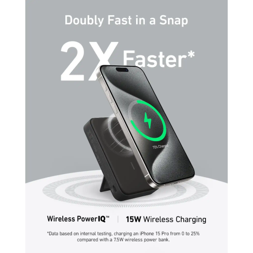 - The Anker A1654 MagGo Magsafe 10000mAh Qi2 Certified Power Bank is the perfect companion for your charging needs. Embrace the convenience of 15W wireless charging, assured by Qi2 certification for fast, secure, and efficient power boosts. Consequently, you’ll experience double the speed with 15W ultra-fast wireless charging, allowing you to power up your devices twice as fast. For instance, you can get your iPhone 15 from 0 to 50% in just 44 minutes.