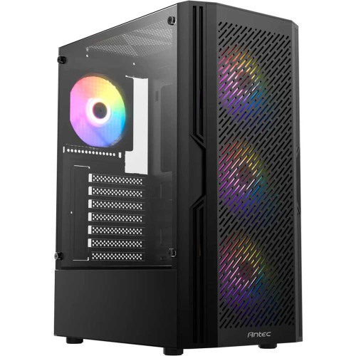 The Antec AX20 Elite Mid-Tower ATX Gaming Case is a striking blend of style and functionality designed for gamers and PC enthusiasts. Featuring a sleek, modern design with a tempered glass side panel, this case showcases your high-performance components in an eye-catching manner. The front panel is adorned with an intricate mesh design that not only enhances the case's aesthetics but also optimizes airflow to keep your system cool during intense gaming sessions. Inside, the AX20 Elite offers ample space for expansion with support for ATX, micro-ATX, and mini-ITX motherboards. It includes multiple drive bays, accommodating up to two 3.5-inch HDDs and two 2.5-inch SSDs, allowing for a customizable storage setup. The case supports up to six fans, with positions for both intake and exhaust, ensuring superior cooling performance. Additionally, it features cable management options to keep your build tidy and organized.Built with durability in mind, the Antec AX20 Elite is constructed from high-quality materials that ensure a long-lasting, robust chassis. Whether you’re a hardcore gamer or a casual builder, this case provides the versatility and cooling necessary for an optimal gaming experience. The Antec AX20 Elite Mid-Tower ATX Gaming Case offers a range of features designed to enhance both performance and aesthetics: