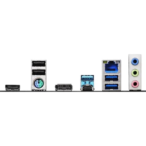 | Internal I/O Ports | - 2 x Antenna Mounting Points - 1 x PS/2 Mouse/Keyboard Port - 1 x HDMI Port - 1 x DisplayPort 1.4 - 1 x USB 3.2 Gen1 Type-C Port - 3 x USB 3.2 Gen1 Type-A Ports - 2 x USB 2.0 Ports - 1 x RJ-45 LAN Port - HD Audio Jacks: Line in / Front Speaker / Microphone |