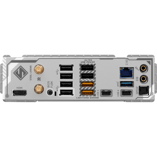 | I/O Port | - 2 x Antenna Ports - 1 x HDMI Port - 1 x Optical SPDIF Out Port - 2 x USB4 Type-C Ports (40 Gb/s)* - 3 x USB 3.2 Gen1 Type-A Ports (USB32_12 are Lightning Gaming Ports.) - 2 x USB 3.2 Gen2 Type-A Ports (10 Gb/s) (USB32_34 supports Ultra USB Power.) - 4 x USB 2.0 Ports - 1 x RJ-45 LAN Port - 1 x BIOS Flashback Button - 1 x Line Out Jack (Gold Audio Jack) - 1 x Microphone Input Jack (Gold Audio Jack) |