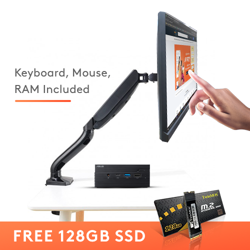 The Asus PN40 Celeron Dual Core Mini PC With Touch Monitor is a compact and efficient computer system comprised of a powerful Asus PN40 Celeron Dual Core Mini PC and a high-quality ASUS VT229H 21.5" Full HD 5ms Low Blue Light Flicker Free Touch Display. This combination delivers a responsive and immersive computing experience that is ideal for both personal and business use. The Asus PN40 Mini PC comes with a G.Skill Ripjaws 8GB DDR4-L 2400MHz SO-DIMM Laptop RAM to ensure smooth performance. This means that the system can easily manage to multitask and demand programs, making it suited for a variety of jobs like video editing, graphic design, or gaming. The Logitech K120 Usb Keyboard With Bangla Black (920-008363) is a comfortable and long-lasting keyboard ideal for daily usage. It has a typical layout with full-size F-keys and a number pad, making typing and navigating through apps simple. The keyboard also supports Bangla characters, making it appropriate for those who wish to type in Bangla. The Logitech B100 Optical USB Mouse is a low-cost mouse that offers fine control and smooth tracking. It is easy to use for lengthy periods, making it ideal for long work hours or gaming marathons. It has also Ergonomic M1 Single Arm Monitor Desk Mount Stand With Cable Management