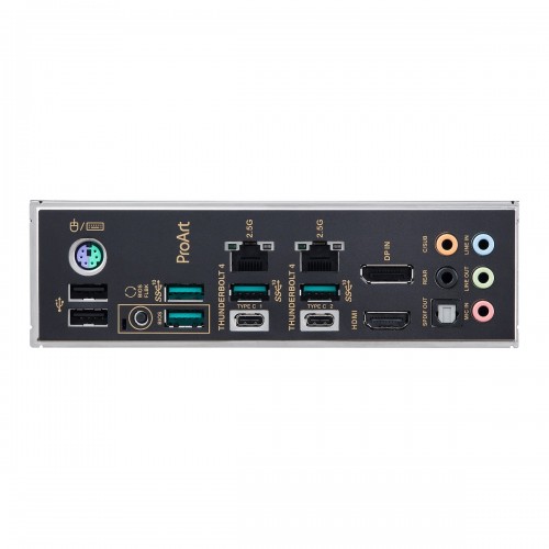 The ProArt B550-Creator motherboard comes with a comprehensive array of powerful I/O ports — including two Thunderbolt 4 ports, two Intel 2.5G Ethernet, and 4 USB 3.2 Gen 2 ports — enabling quick data transfers and extensive storage options with flexible, hassle-free connectivity. ASUS ProArt B550-Creator Motherboard Each Thunderbolt 4 port delivers up to 40 Gbps of bidirectional bandwidth for the newest high-speed devices and drives. Thunderbolt 4 also supports up to 2 external 4K UHD displays or one 8K display.