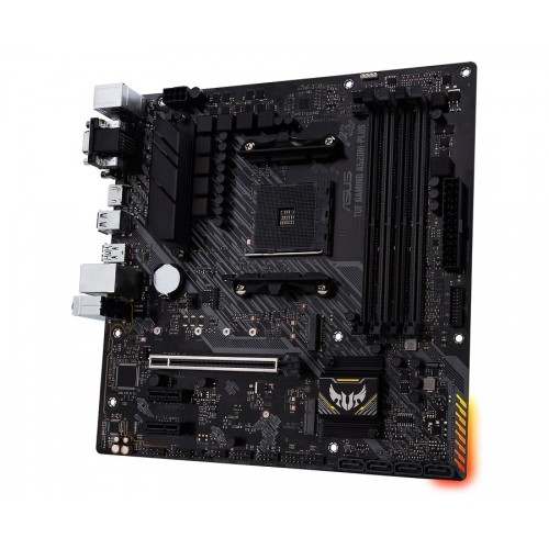 Asus TUF Gaming A520M-Plus distills essential elements of the latest AMD platform and combines them with game-ready features and proven durability. Engineered with military-grade components, an upgraded power solution, and a comprehensive set of cooling options, this motherboard delivers rock-solid performance with unwavering gaming stability. When you build with a TUF Gaming motherboard, you also benefit from the TUF Gaming Alliance — an ASUS collaboration with trusted industry partners that ensures easier building, the best compatibility, and complementary aesthetics from components to case. With upgraded power delivery and comprehensive cooling options to fuel the latest AMD Ryzen CPUs, plus support for faster memory, TUF Gaming A520M-Plus is the perfect foundation for your next high-core-count battle rig. Certified military-grade TUF chokes deliver rock-steady power to the CPU, improving system stability. Proprietary capacitors provide up to 20% greater temperature tolerance and a 5X-longer lifespan. TUF Gaming motherboards are designed to be easy to set up and configure just the way you want — even for first-time builders. The TUF Gaming Alliance eco-system makes selecting compatible parts easy, while Armoury Crate software offers full control of system settings via a single dashboard. TUF Gaming motherboards give you everything you need to build your dream gaming rig without adding complexity. TUF Gaming Alliance is a collaboration between ASUS and trusted PC-component brands to ensure compatibility with a wide range of parts, such as PC cases, power supplies, CPU coolers, memory kits, and more. With more partnerships and components being added regularly, the TUF Gaming Alliance will continue to grow even stronger.