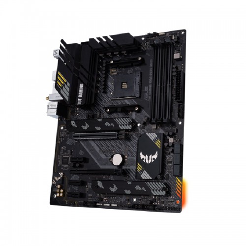 The ASUS TUF Gaming B550-Plus (Wi-Fi) distils essential elements of the latest AMD platform and combines them with game-ready features and proven durability. It is engineered with military-grade components, an upgraded power solution and a comprehensive set of cooling options, this motherboard delivers rock-solid performance with unwavering gaming stability. It comes with upgraded power delivery and comprehensive cooling options to fuel the latest AMD Ryzen CPUs, plus support for faster memory and storage. The onboard VRM of TUF Gaming B550-Plus (Wi-Fi) utilizes 8+2 DrMOS power stages that combine high-side and low-side MOSFETs and driver into a single package. 2-ounce copper layers draw heat away from critical components to keep them at their optimal operating temperatures. The M.2 heatsink keeps the M.2 SSD at the optimum operating temperature for consistent performance and reliability. High-quality thermal pads help transfer heat from the inductor and phase array to the heatsink. It supports PCIe 4.0 M.2 slot and provides NVMe SSD RAID support for an incredible performance boost. It comes with an integrated Thunderbolt 3 header that supports up to 40 Gbps of the aggregate interface bandwidth. It features pristine audio with positional cues for FPS gaming and onboard RGB lighting that syncs with attached accessories to help you create a personalized gaming atmosphere.