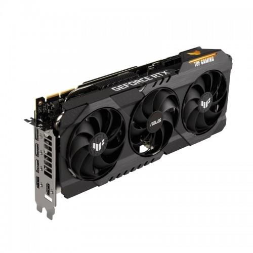 ASUS TUF Gaming GeForce RTX 3090 OC Edition Graphics Card features NVIDIA Ampere Streaming Multiprocessors: The building blocks for the world's fastest, most efficient GPU, the all-new Ampere SM brings 2X the FP32 throughput and improved power efficiency. It comes with 2nd Generation RT Cores: Experience 2X the throughput of 1st gen RT Cores, plus concurrent RT and shading for a whole new level of ray tracing performance. It also has 3rd Generation Tensor Cores: Get up to 2X the throughput with structural sparsity and advanced AI algorithms such as DLSS. Now with support for up to 8K resolution, these cores deliver a massive boost in-game performance and all-new AI capabilities. A new all-metal shroud houses three powerful axial-tech fans that utilize durable dual ball fan bearings. Fan rotation has been optimized for reduced turbulence, and a stop mode brings all three fans to a halt at low temps. Beneath, independent heatsinks for the GPU and memory keep thermals under tight control. Additional features, including TUF components, Auto-Extreme Technology, a new GPU bracket, and a backplate vent make the TUF a proper powerhouse. Axial-tech fan design, with three fans working in tandem to satisfy the thermal demands of NVIDIA's new high-octane design. The fans rely on dual ball fan bearings to ensure consistent performance and increased longevity compared to sleeve bearings and other bearing types. Dual Ball Fan Bearings can last up to twice as long as a sleeve bearing designs. The two fans spin counterclockwise to reduce turbulence. and to eliminate unnecessary noise, a stop mode halts all fans when the GPU temp falls below 50 degrees and power consumption is low. The heat spreader draws heat up into heat pipes that carry it through a fin stack that fills most of the card's large, 2.7-slot footprint. Military-grade Capacitors and other TUF components enhance durability and performance. An all-aluminium shroud adds robust protection to TUF Gaming graphics cards and a no-nonsense industrial design and grayscale colourway fits into any build with ease. The top-side RGB element can be customized to display a range of aesthetic and functional effects and also synced with other ASUS components to enable uniform lighting. The ASUS GPU Tweak II utility takes graphics card tuning to the next level. It allows you to tweak critical parameters including GPU core clocks, memory frequency, and voltage settings, with the option to monitor everything in real-time through a customizable on-screen display. Advanced fan control is also included along with many more features to help you get the most out of your graphics card. ASUS TUF Gaming GeForce RTX 3090 OC Edition 24GB GDDR6X Graphics Card has 3 years warranty.