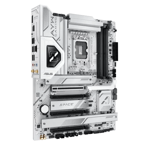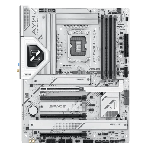 The ASUS Z890 AYW GAMING WIFI W LGA 1851 ATX Motherboard is designed to deliver unmatched performance with support for the latest Intel® Core™ Ultra Series processors. Its four DDR5 DIMM slots can accommodate up to 192GB of RAM, with overclocked speeds reaching up to 9066+ MT/s, ensuring that your system can handle the most demanding applications and games with ease. The motherboard's multiple PCIe 5.0 slots provide ultra-fast data transfer rates and future-proofing for next-generation graphics cards and storage devices. Additionally, the comprehensive range of USB ports, including USB 20Gbps Type-C with DisplayPort Alt Mode and USB PD 3.0 for up to 30W fast charging, enhances compatibility and convenience, making it an ideal choice for high-performance builds.