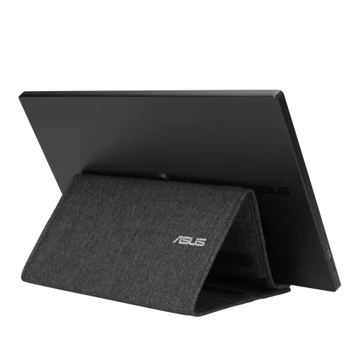 The ASUS ZenScreen MB166B Monitor is a portable USB-powered 15.6-inch monitor that uses a single USB 3.2 connection for both power and video signal transmission. Its anti-glare IPS display and ultra-slim design let you work more effectively while on the road. The design is user-friendly, with an incorporated tripod connector on the back and a folding sleeve for adaptability. This display can detect its orientation and transition between landscape and portrait modes automatically.