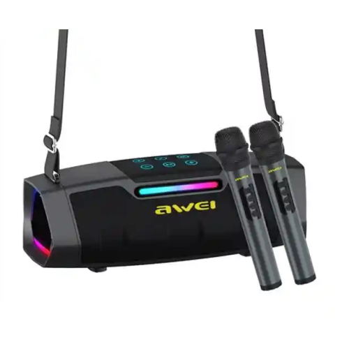 The AWEI KT28 is a 30W wireless karaoke Bluetooth speaker designed to bring a party atmosphere to any setting. With its powerful audio output, it's suitable for both indoor gatherings and outdoor events. The speaker is equipped with two 15W drivers, delivering a total of 30W of clear, dynamic sound with notable bass and crisp highs.