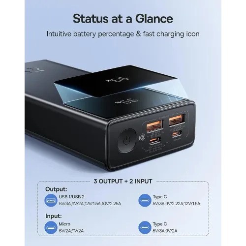 Highlighting both Miniature USB and Type-C info ports, the power bank offers adaptability in re-energizing choices. The Miniature Info upholds 5V/2A and 9V/2A, while the Kind C Information upholds 5V/3A and 9V/2A, permitting you to re-energize the power bank rapidly utilizing different charging connectors.