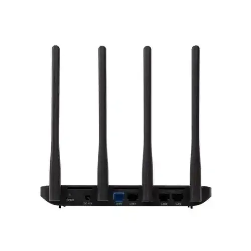 The BDCOM WAP2100-WR1200G is a powerful and versatile dual band gigabit wifi Router that can deliver fast and stable wireless connections for your home or office. It supports the latest wireless standards, IEEE802.11b/g/n and IEEE802.11a/n/ac, and can operate on both 2.4GHz and 5GHz bands. Provide up to 300Mbps on the 2.4GHz band and up to 867Mbps on the 5GHz band, ensuring smooth online gaming, HD video streaming, and web browsing. BDCOM WAP2100-WR1200G 1200mbps Dual band Gigabit Wifi Router has four external antennas that enhance the signal coverage and reliability. It has four gigabit ethernet ports, one for WAN and three for LAN, that offer high-speed wired connections for your devices. BDCOM WAP2100-WR1200G 1200mbps Dual band Gigabit Wifi Router has a compact and sleek design, with dimensions of 200x110x24(mm), and an AC 220V adaptor for power supply.