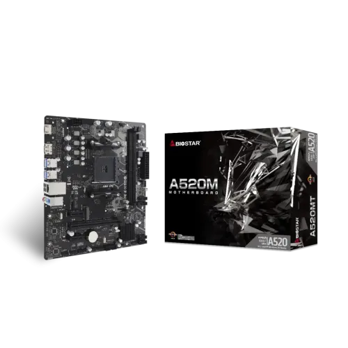 The BIOSTAR A520MT DDR4 AMD AM4 Micro ATX Motherboard is a high-performance motherboard designed to meet the demands of modern computing. With its Socket AM4 support, this motherboard is compatible with AMD Ryzen 3rd Gen (Matisse/ Renoir) and Ryzen 4th Gen (Vermeer/ Cezanne) processors, ensuring optimal performance and efficiency. Featuring the AMD A520 single-chip architecture, this motherboard offers a seamless and reliable computing experience. The 2-DIMM DDR4 memory support allows for a maximum capacity of up to 64 GB, enabling smooth multitasking and efficient data processing. Equipped with Realtek Gigabit LAN, this Motherboard ensures fast and stable internet connectivity, perfect for online gaming, streaming, and downloading large files. The inclusion of Front USB 3.2 Gen2 Type-C provides convenient and high-speed data transfer capabilities, allowing you to connect and transfer files effortlessly. With M.2 (32Gb/s) support, this motherboard offers lightning-fast storage options, ensuring quick access to your files and applications. Additionally, the HDMI 4K resolution support allows for stunning visuals and immersive viewing experiences, making it ideal for multimedia enthusiasts and gamers. The BIOSTAR A520MT DDR4 AMD AM4 Micro ATX Motherboard is a reliable and feature-packed motherboard that delivers exceptional performance and versatility. Whether you're a professional seeking a powerful computing solution or a gamer looking for an immersive gaming experience, this motherboard is sure to meet and exceed your expectations.