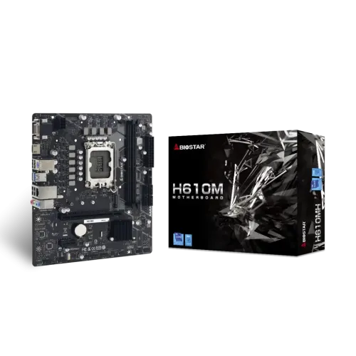 The BIOSTAR H610MH is a high-quality micro ATX motherboard designed for 12th and 13th generation Intel Core processors. With its compact form factor and powerful features, it offers an excellent foundation for building a reliable and efficient computer system.One of the standout features of the H610MH motherboard its support for 12th and 13th generation Intel Core i9, i7, i5, i3 processors, as well as Intel Pentium and Celeron processors in the LGA1700 package. This ensures compatibility with a wide range CPUs, allowing users to choose the processor that best suits their needs and budget.In terms of memory, the H610MH supports up to 64GB of DDR4 RAM in dual-channel configuration. It supports various memory speeds ranging from 1866MHz to 3200MHz, including Intel Extreme Memory Profile (XMP) memory modules. This allows for smooth multitasking and efficient performance, whether you're gaming, editing videos, or running demanding applications.The motherboard provides multiple expansion slots, including one PCIe 4.0 x16 slot and one PCIe 3.0 x1 slot, enabling users to install high-performance graphics cards, sound cards, or other expansion cards as needed. Additionally, it offers ample storage options with four SATA III connectors and one M.2 socket, supporting both SATA and PCI-E SSDs for fast data transfer rates.Connectivity-wise, the H610MH offers a range of ports and headers. It includes HDMI and VGA ports for connecting displays, USB 3.2 and USB 2.0 ports for peripherals, and LAN port for network connectivity. The audio section features the ALC897 chipset, providing high-definition 7.1 channel audio for immersive sound experiences.To ensure system stability and security, the motherboard comes with features like TPM (Trusted Platform Module) header and Clear CMOS header. It also includes bundled software, such as BullGuard, for added protection against malware and viruses.With its reliable performance, expandability options, and comprehensive features, the BIOSTAR H610MH micro ATX motherboard is an excellent choice for users looking build a powerful and versatile computer system. Whether you a gamer, content creator, or professional user, this motherboard provides a solid foundation for your computing needs.