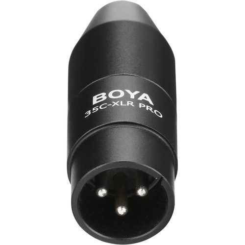The Boya 35C-XLRPRO is an adapter that allows you to connect a microphone with a 3.5mm TRS connection to a professional camera, recorder, or mixer's XLR input. The 35C-XLRPRO also converts 12 to 48V phantom power to 3 to 5V plug-in power, allowing lavalier, headset, and shotgun microphones to be powered via the XLR connection. The adapter is small and lightweight, with a 3.5mm female TRS connector on one end and an XLR male connector on the other. The 3.5mm connection is threaded to prevent your microphone from disconnecting during recording. The BOYA 35C-XLR Pro Power Converter comes with a 02-year warranty.