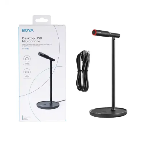 The BOYA BY-CM1 Desktop USB Microphone is a USB-connected microphone that may be used with a computer or other device. This makes it ideal for live broadcasting, video conferencing, e-sports gaming, and other applications requiring high-quality audio capture. Dual Noise Reduction - An Effective Combination of Physics and Magic The BOYA BY-CM1 noise reduction chip, algorithm filtering noise, cardioid directional noise-canceling, and physical noise filtering enhances the noise reduction effect by 60% over the BOYA-M1. No driver is required & interchangeable cable design.
