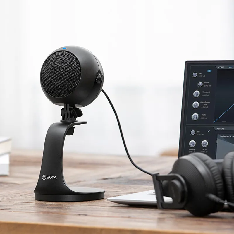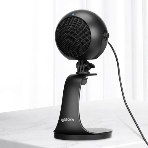 BY-PM300 features gain control,headphone volume control and mute function,The 3.5mm headphone jack enables real-time monitoring,Detachable desktop stand allows you to adjust the microphone at the desired angle.