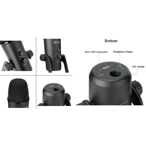 BOYA BY-PM700 USB Microphone With an integrated multifunctional knob and a 1/8" (3.5mm) headphone output, BOYA BY-PM700 makes your using experience easier and more convenient.With control knob, it can easily realize the mute function, headphone monitoring as well as recording volume precise control.