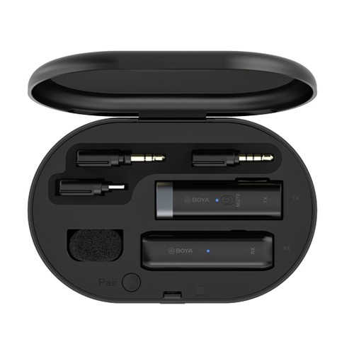BOYA BY-WM3D Microphone With an in-built omnidirectional microphone on the transmitter, it is easy to use. After pairing, just connect the receiver with your recording device, pin the transmitter on your collar to get started.