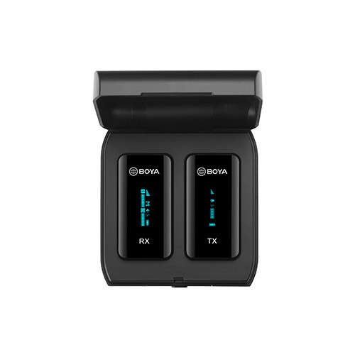 The BOYA BY-XM6-K1, a 2.4GHz adaptive frequency hopping wireless microphone system, consists of one transmitter, one receiver, as well as a charging case. It’s a perfect sound capturing, meanwhile delivering solution for one-person vlog, YouTube video, live streaming, interview, recording, etc.