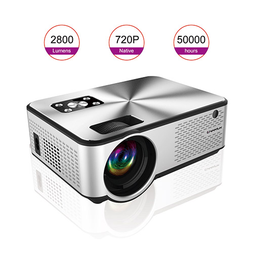 The CHEERLUX C9 HD PROJECTOR 2800 LUMENS WITH BUILT-IN TV. This projector has Native 720P; Support 1080P Native Resolution, 2800 lumens brightness, 2000:1 Contrast Ratio. You can control its lens focus manually and it's lamp life is 50000hours. In this projector, it's projection Size: 50" - 120", Distance: 1m - 3m, and projection methods are Front. Rear. Ceiling Mount. table top. LED lamp serves up to 50 thousand hours and will not damage your eyes and 1 to 3m projection distance for home theater. This projector built-in speaker for wonderful sound effect with Manual trapezoidal correction, flexible placement ± 20°.