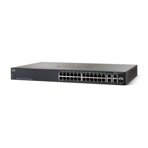 A stellar addition to your business, the SF300-24 Managed 24-Port 10/100 Ethernet Switch from Cisco is a feature-packed, 24-Port Fast Ethernet switch for your network. Beyond these ports, this switch also features four Gigabit Ethernet ports, two of which can operate as either mini-GBIC Ethernet or as standard RJ-45 Ethernet gigabit connections. With these particular ports, you can connect gigabit or fiber optic devices to the switch.