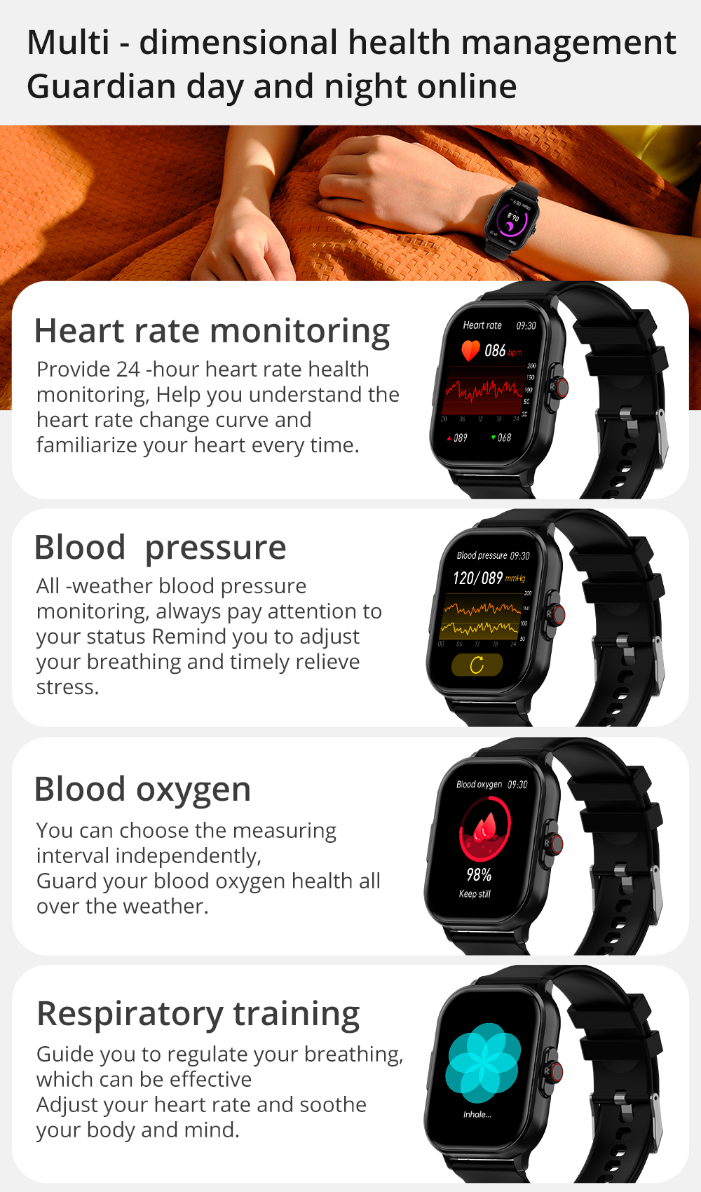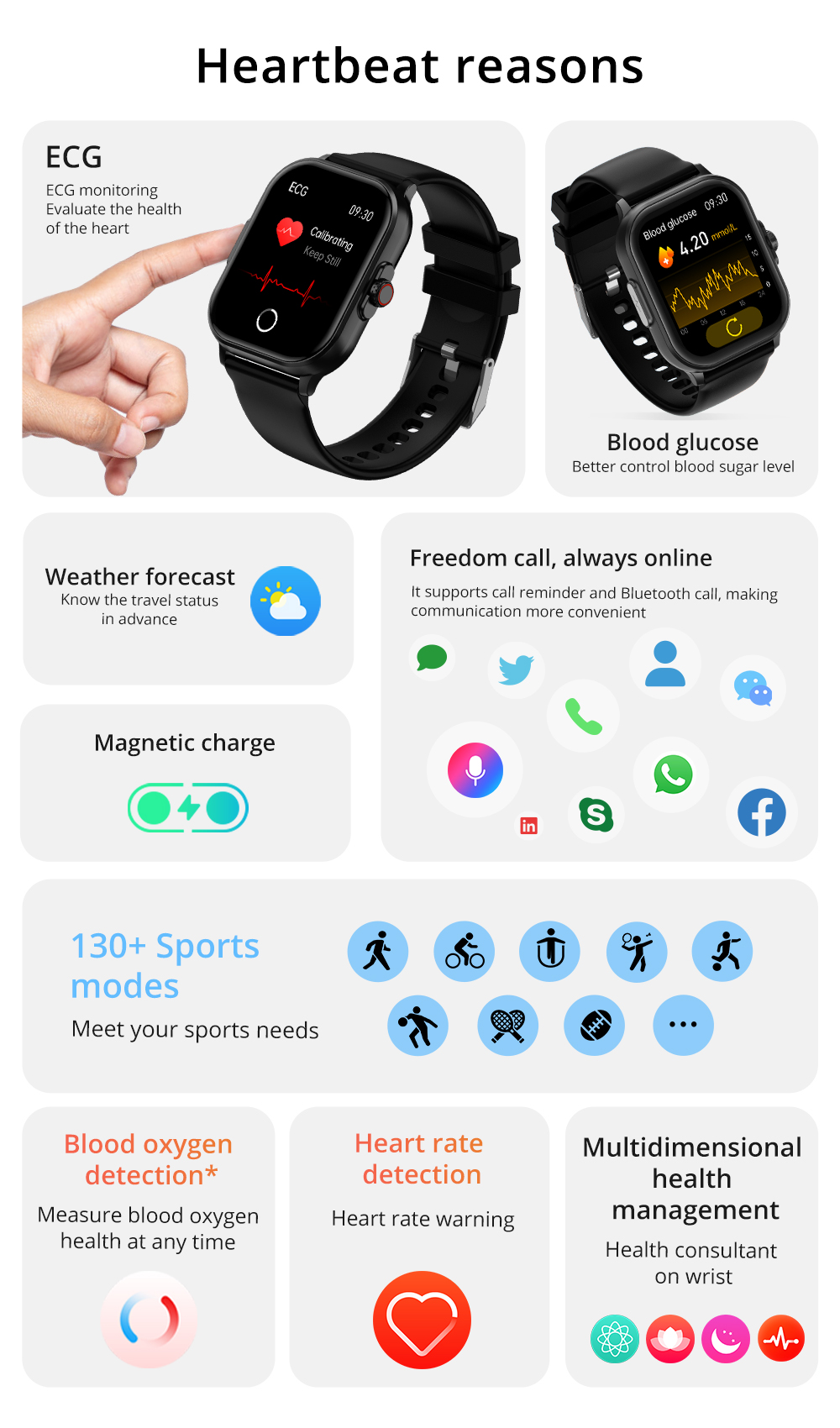 ECG function: COLMi C63 supports ECG monitoring function, based on the principle of electrocardiogram measurement, it can evaluate heart health.