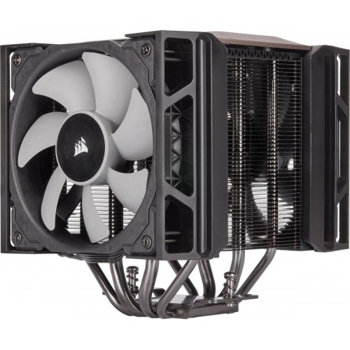 The Corsair A500 High Performance Dual Fan CPU Cooler is a top-of-the-line cooling solution designed to keep your CPU running at optimal temperatures even during intense usage. With its exceptional cooling performance, durable construction, and user-friendly design, this CPU cooler is an excellent choice for gamers, content creators, and PC enthusiasts seeking maximum cooling efficiency.The Corsair A500 features a dual fan configuration, consisting of two 120mm fans, which work in tandem to deliver high airflow and efficient heat dissipation. With a fan airflow of 75 CFM, the cooler effectively directs cool air towards the CPU heatsink, while the 2400 RPM fan speed ensures rapid heat dissipation. This powerful combination keeps your CPU cool and ensures stable performance, even when tackling demanding tasks.To further enhance its cooling capabilities, the Corsair A500 is equipped with a heatpipe design. The heatpipes are made of copper, a highly conductive material known for its excellent heat transfer properties. They efficiently draw heat away from the CPU and transfer it to the aluminum heatsink, which is designed to dissipate heat rapidly. The copper heatpipes and aluminum heatsink work together to provide efficient cooling performance and maintain low CPU temperatures.With an air pressure rating of 4.2 mm-H2O, the Corsair A500 ensures optimal contact between the CPU and the cooler, maximizing heat transfer and enhancing cooling efficiency. This is particularly important when dealing with high-performance CPUs that generate significant heat during operation.While delivering exceptional cooling performance, the Corsair A500 operates at a noise level of 36 dBA. While not the quietest option available, this noise level is expected from a high-performance air cooler and is still considered acceptable for most users. Additionally, the noise can be further reduced by adjusting the fan speed using the integrated PWM control.The Corsair A500 is designed as an air cooler, which means it relies on a combination of fans and heatsinks for cooling rather than liquid cooling. This design makes it easy to install and maintain, making it a popular choice for users who prefer air cooling solutions.The CPU cooler comes with a 5-year manufacturing warranty, providing peace of mind and ensuring long-term reliability. Corsair is known for its high-quality products and customer support, so you can trust in the durability and performance of the A500.
