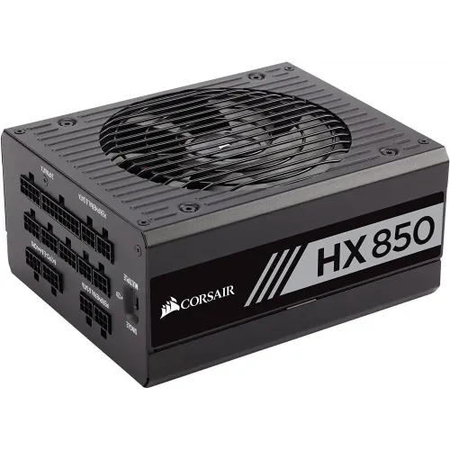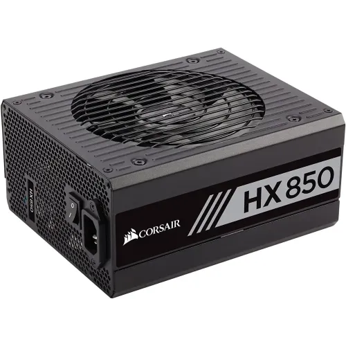 The Corsair HX Series HX850 is a high-quality power supply designed for high-performance PCs where reliability and efficiency are essential. It features 80 PLUS Platinum certification, providing extremely efficient power delivery and reducing operating costs and excess heat. With its fully modular design, the HX850 allows for easy installation and clean cable management, resulting in a neat and visually appealing build. The Corsair HX850 is its virtually silent operation. It utilizes a Zero RPM Fan Mode, meaning the fan remains off until it's needed, resulting in quiet operation at low and medium loads. This feature is particularly beneficial for users who prioritize a silent computing experience. The power supply offers a choice between single +12V rail or multi +12V rail mode, allowing users to toggle between different power delivery configurations based on their specific needs. In the "SINGLE" position, the full output capability of the +12V rail is available to all connectors. On the other hand, in the "MULTIPLE" position, each individual connector has Over-Current Protection, ensuring that no more than 40A of current is delivered on any given cable. The Corsair HX850 is built with premium internal components, including all Japanese 105°C capacitors, which enhance power delivery and contribute to long-term reliability. These high-quality components ensure stable operation even under demanding conditions, making the power supply a reliable choice for high-performance systems. The Corsair HX Series HX850 is a top-tier power supply that offers platinum-level efficiency, virtually silent operation, and a fully modular design. With its exceptional build quality and reliable performance, it is a great choice for users seeking a power supply that can meet the demands of their high-performance PCs while providing a quiet and efficient computing experience.