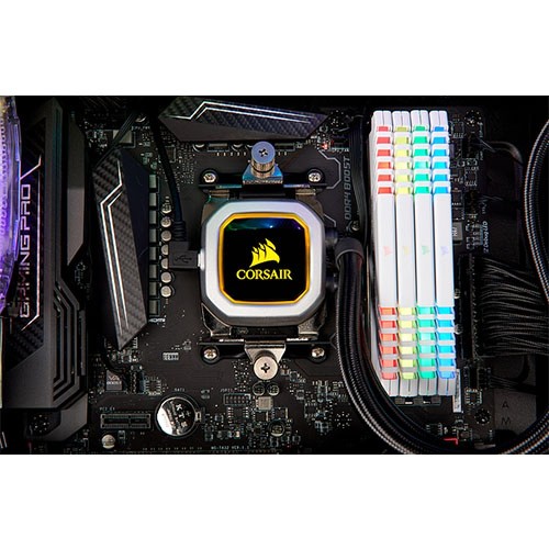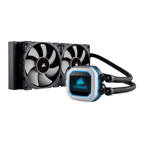 The CORSAIR Hydro Series H100i PRO is an all-in-one RGB liquid CPU cooler with a 240mm radiator built for low-noise cooling and bold styling with an RGB LED pump head.