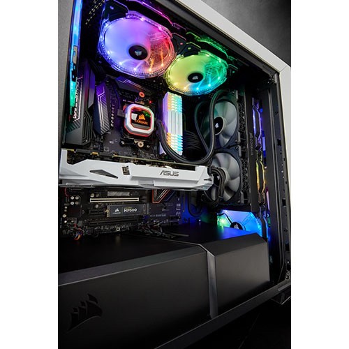 CORSAIR iCUE software brings your system to life with dynamic synchronized RGB lighting, customizable fan speeds to silence fans and advanced system monitoring all from a single intuitive interface.