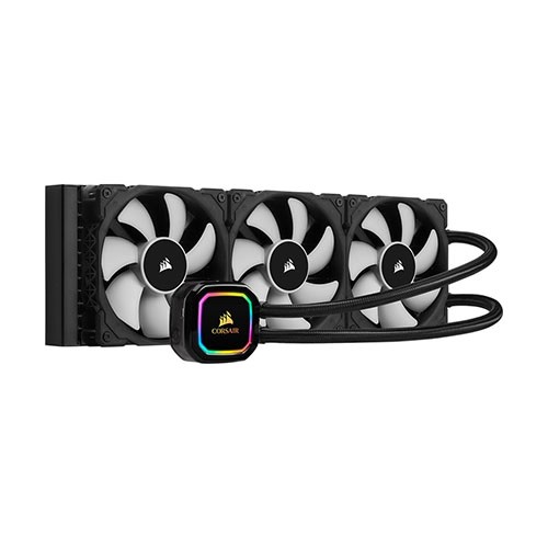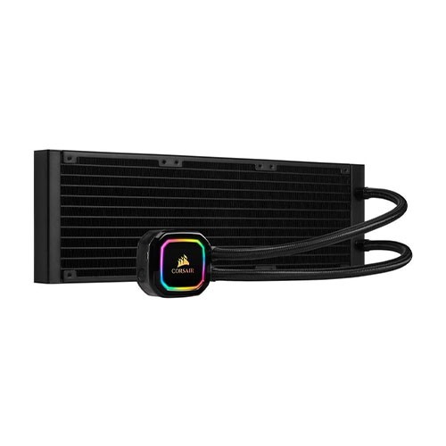 The CORSAIR Hydro Series H150i PRO is an all-in-one RGB liquid CPU cooler with a 360mm radiator built for low-noise cooling and bold styling with an RGB LED pump head. Vibrant RGB LED pump head produces vivid lighting effects to match your build. Three low-noise 120mm ML Series magnetic levitation PWM fans deliver improved airflow and produce just 25 dBA of noise at full speed. CORSAIR iCUE software allows you to adjust RGB lighting, individual fan speeds, and pump speed while monitoring CPU and coolant temperatures, and more. Zero RPM cooling profile in CORSAIR iCUE software allows fans to stop entirely at low temperatures, eliminating fan noise. Advanced pump speed control options to maximize performance or minimize noise. Modular, tool-free mounting bracket for quick and painless installation on most major CPU sockets. CORSAIR iCUE software brings your system to life with dynamic synchronized RGB lighting, customizable fan speeds to silence fans and advanced system monitoring.