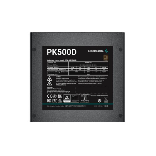 DEEPCOOL PK500D 500W 80 PLUS Bronze Certified Power Supply is a robust and efficient power supply unit designed for a variety of computing needs. It features a Hypro Bearing 120mm fan that ensures optimal cooling performance while maintaining low noise levels. This is crucial for maintaining system stability and longevity, especially under heavy loads. The power supply is equipped with high-quality Taiwan capacitors, which contribute to its reliability and durability. It meets the ErP 2013 regulation, emphasizing its energy efficiency and eco-friendliness. The power good signal range of 100-150ms ensures that the system has stable power to boot correctly, enhancing overall system performance and reliability. With an efficiency of ≥85% under typical load (50% loading), the DEEPCOOL PK500D stands out for its energy-saving capabilities. This high efficiency means less power wastage and lower electricity bills, making it an economically sound choice for both personal and business use. The hold-up time of ≥16ms at 80% load ensures that the power supply can handle short power interruptions without causing system crashes or data loss. The power supply employs an Active PFC+DC to DC topology, which improves power conversion efficiency and stability. It conforms to the ATX12V V2.4 standard, making it compatible with a wide range of modern motherboards and systems. With a mean time between failures (MTBF) of 100,000 hours, the DEEPCOOL PK500D promises long-term reliability and performance. Additionally, the power supply is packed with comprehensive protection features, including SCP (Short Circuit Protection), OPP (Over Power Protection), OTP (Over Temperature Protection), OVP (Over Voltage Protection), OCP (Over Current Protection), and UVP (Under Voltage Protection). These features ensure the safety and longevity of both the power supply and the connected components. Physically, the DEEPCOOL PK500D operates within a temperature range of 0 - 40°C, making it suitable for various operating environments. Its compact dimensions of 150×140×86mm allow for easy installation in most ATX cases. The DEEPCOOL PK500D also carries multiple regulatory certifications, including CB, CE, FCC, CAN ICES-003(B), NMB-003(B), TUV-RH, CCC, UKCA, EAC, RCM, and BIS. These certifications attest to its compliance with international safety and performance standards. As an 80PLUS Bronze certified unit, it guarantees a minimum efficiency of 82%, contributing to lower energy consumption and heat generation. In summary, the DEEPCOOL PK500D is a highly reliable, efficient, and safe power supply unit, suitable for a variety of computing environments, and is designed to provide stable power for a wide range of systems.