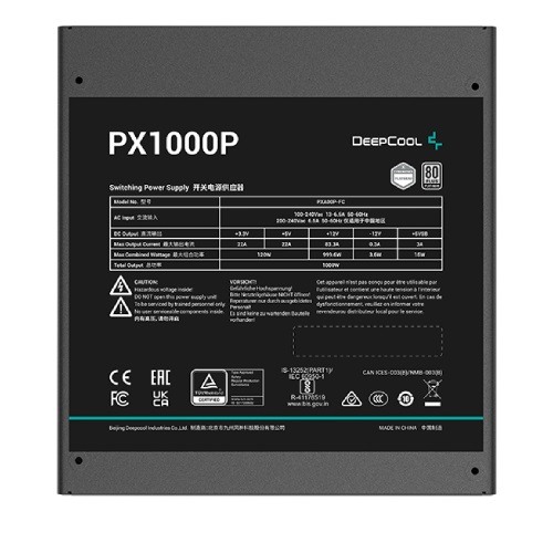The DeepCool PX1000P 1000W 80 Plus Platinum Fully Modular Power Supply is a cutting-edge unit designed to meet the latest Intel ATX 3.0 standards, providing robust and stable power delivery for modern, high-performance computing systems. Featuring a dedicated 12VHPWR connector, two EPS connectors, and five PCI-e ports, it ensures compatibility with a wide range of high-power components. The PX1000P is capable of delivering up to three times the total GPU power and twice the total system power for brief bursts of 0.1 milliseconds, effectively mitigating concerns about random power spikes and ensuring reliability for both legacy and next-generation PCs. With 80 Plus and Cybernetics Platinum certifications, the PX1000P power supply demonstrates a high level of energy efficiency, converting a significant percentage of input power into useful output and reducing energy waste. Built with premium materials, including all Japanese Electrolytic 105°C capacitors and a dual main capacitor topology, it operates reliably even at altitudes up to 5000 meters, ensuring long-term durability and stable power delivery. The PSU's advanced design includes a semi-digital, interleaved Power Factor Correction (PFC) with Full-Bridge & LLC topology, and a DC to DC dual main capacitor configuration, maintaining a hold-up time of ≥ 16 milliseconds under full load for continuous power during demanding conditions. Equipped with a high-quality, 105°C-resistant, copper-core PCI-e Gen 5.0 12VHPWR cable, the PX1000P delivers up to 600W of power to the most demanding GPUs, making it ideal for gaming enthusiasts and professionals requiring peak graphics performance. It also features a hybrid cooling mode, allowing for semi-fanless operation where the 120mm Fluid Dynamic Bearing (FDB) fan remains inactive during low system loads, ensuring silent operation. The fan dynamically adjusts based on system demands, providing active cooling only when necessary. The PX1000P includes a comprehensive set of protection mechanisms such as Over Power Protection (OPP), Over Voltage Protection (OVP), Short Circuit Protection (SCP), Over Temperature Protection (OTP), Over Current Protection (OCP), Voltage Protection (UVP), No Load Operation (NLO), and Surge & Inrush Protection (SIP). These features safeguard the system against electrical faults and ensure long-term operational stability. Overall, the DeepCool PX1000P is a premier choice for those seeking a powerful, efficient, and reliable PSU for their high-performance computing needs.