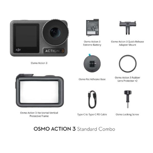 DJI Osmo Action 3 Standard Combo is a remarkable 4K action camera designed for capturing your adventures in stunning detail and clarity. With its compact and lightweight design, this camera is a perfect companion for all outdoor enthusiasts and content creators. Let's delve into the key features and specifications of this innovative action camera. One of the standout features of the Osmo Action 3 is its dual-screen setup. It boasts a 1.4-inch front screen with a high resolution of 326 ppi, making it ideal for framing shots when you're in front of the camera. The rear screen is a 2.25-inch display with the same impressive 326 ppi resolution. Both screens offer excellent clarity, and the front screen is a unique addition for vloggers and selfie enthusiasts. In terms of image quality, the Osmo Action 3 delivers outstanding performance. It can capture photos and videos with a resolution range of 100-12800, ensuring sharp and vibrant images even in challenging lighting conditions. The camera's lens features a wide 155° field of view and an f/2.8 aperture, making it great for capturing landscapes, action shots, and more. The camera is equipped with a 1/1.7-inch CMOS sensor, which enhances its low-light capabilities and ensures excellent image quality. Additionally, it supports various shooting modes, including time-lapse and hyperlapse, providing creative flexibility to the user. When it comes to durability, the Osmo Action 3 is no slouch. It is water-resistant up to 16 meters without the need for a waterproof case, and with the case, it can go as deep as 60 meters, making it perfect for underwater adventures. The camera's rugged build can withstand the rigors of outdoor activities and harsh conditions. The Osmo Action 3 offers seamless connectivity with Bluetooth 5.0, enabling you to connect it to your smartphone for remote control and easy content sharing. It also supports up to 256GB of microSD storage for your media, ensuring you never run out of space for your adventures. With a LiPo 1S battery packing 1770 mAh of power, the Osmo Action 3 can keep up with your long shooting sessions. It provides up to 160 minutes of operating time, ensuring you don't miss out on any action.