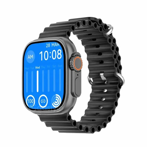 The smartwatch body is made of zinc alloy while the strap is available in silicone. Regarding the display screen! This DT 8 Ultra smart watch uses a 2.02-inch Large IPS touch screen curved with 2.5D glass and is created with a resolution of 420*480 pixels. This Apple Ultra clone is also packed with a variety of watch faces.