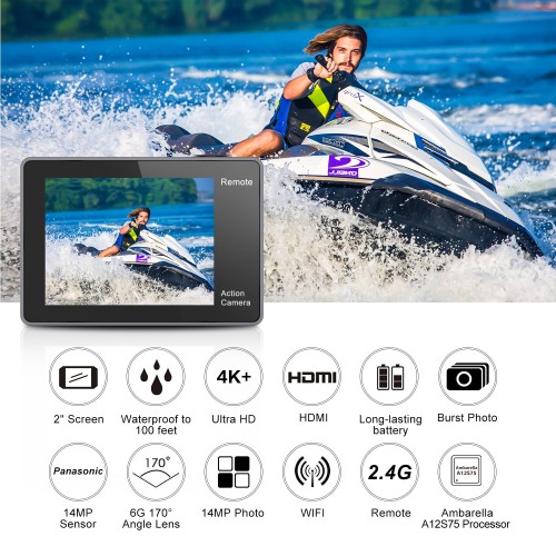 Featuring 4K30/2.7K30 /1080p60/1080p30 video resolution and 14MP photo, the EKEN H9Rplus 4K video camera allows you to take professional quality video from anywhere you wish.