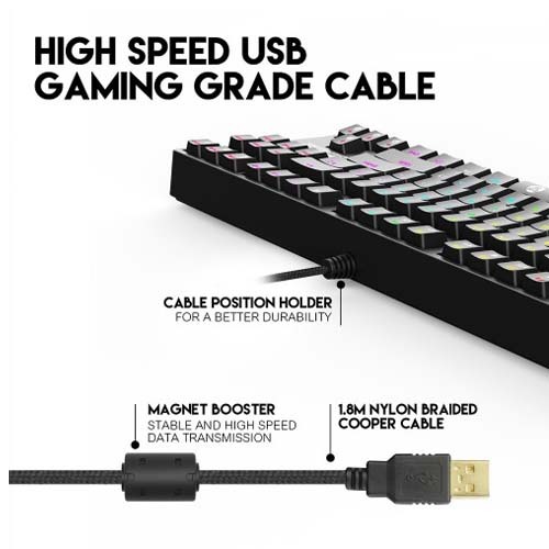 The exclusive Fantech keyboard is an ideal gaming keyboard which is comprised of 104 Full-size RGB keys with 12 Media keys. It has the ability to simultaneously press up to all keys with the help of Anti-Ghosting Technology. Besides, the keyboard has a double injection pump. The keyboard case is made of Metal Base. Chroma Illumination mode is available in this black colored device. It also has 19 Backlit RGB Modes.