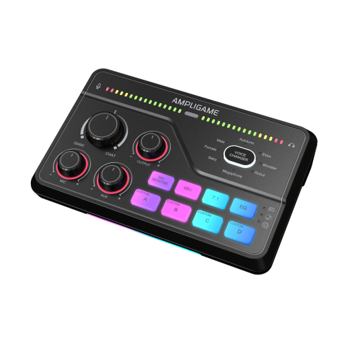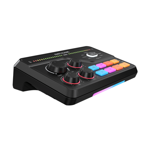 To keep your stream engaging, the SC8 includes 12 sound effects and 6 voice-changing modes (such as Robot, Monster, and Baby). It also features four programmable sample buttons that allow you to record and trigger up to 15 seconds of custom audio. Visually, the mixer stands out with 15 customizable RGB modes that can be synced to your gaming aesthetic.