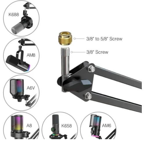 Installation is straightforward and requires no tools. The upgraded C-clamp includes anti-scratch pads to protect your desk and a secure knob that provides a firm grip on surfaces up to 2.1 inches (53 mm) thick. The stand is universally compatible with most microphones and shock mounts, thanks to its standard 3/8" threading and the included 3/8" to 5/8" adapter. This makes it a versatile choice for a wide range of popular microphones from both FIFINE and other brands. With its blend of robust construction, ease of use, and a space-saving design, the FIFINE CS1 is a solid and affordable upgrade for any desktop audio setup.