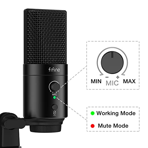 FIFINE K683B USB Desktop PC Microphone with Pop Filter for Computer and Mac, Studio Condenser Mic with Gain Control, Mute Button, Headphone Jack, Desk Stand & Extra USB-C Plug