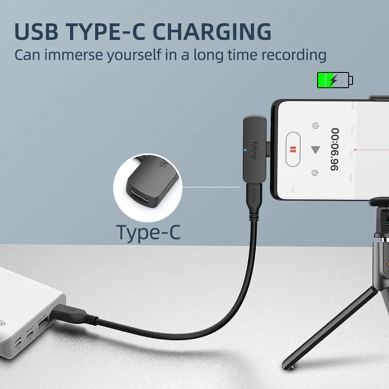 For usage with smartphones, tablets, and laptops, the FIFINE M6 Type-C Wireless Lavalier Recording Microphone is ideal. You may easily record audio of the highest quality thanks to it. Additionally, it's simple to set up and operate, allowing you to start filming immediately. This microphone's goal is to reproduce sound clearly and precisely. Additionally, it has an omnidirectional polar pattern, which guarantees noise- and distortion-free recordings. Additionally, you can be confident that your voice will sound amazing on any track or podcast thanks to the frequency response of 50Hz–15kHz.