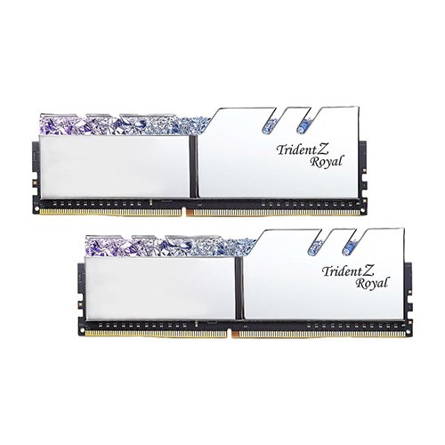 Trident Z Royal Series RAM Is The Newest Member Of The Trident Z Family. Featuring A Crown Jewel Design And Meticulously Crafted To Display Just The Right Amount Of Light Refraction, The Crystalline Light Bar Scatters RGB Colors In A Magnificent Display Of LED Lighting. Mirroring The High-Class Light Bar Design, Polished Aluminum Heatspreaders Of Gold Or Silver Colors Cool The Memory Modules In The Classic Trident Z Tri-Fin Design.