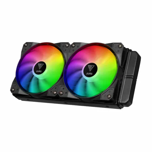 The Gamdias AURA GL240 is a tiny all-in-one RGB liquid CPU Cooler with highly efficient PWM fans with hydraulic bearings for improved airflow and robust Teflon tubing for improved aesthetics and long-term performance. The AURA cooler is outfitted with two high-performance PWM fans with long-lasting hydraulic bearings, as well as RGB stream lighting on both the fans and the pump. The cooler comes with a leak-free Teflon Tube, making this All-in-One system exceptionally low maintenance. This CPU Cooler is Compatible with intel LGA2066 / LGA1200 / 2011-v3 / 2011 / 1700 / 1151 / 1150 / 1155 / 1156 / 1366 & AMD AM4 / AM3+ / AM3 / AM2+ / AM2 / FM2+ / FM2 / FM1. The Gamdias AURA GL240 All-in-One RGB Liquid CPU Cooler comes with a 03-year warranty.