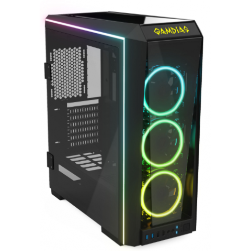 TALOS P1A is a premium mid –tower case, larger than general mid-tower case with 2 tempered glass side-swing doors, eye-catching rainbow RGB lighting fans, and RGB lighting motherboard synchronization (5V 3-pin). Sleek tempered glass panels fully display all components and lead the user to a brand new modding experience!