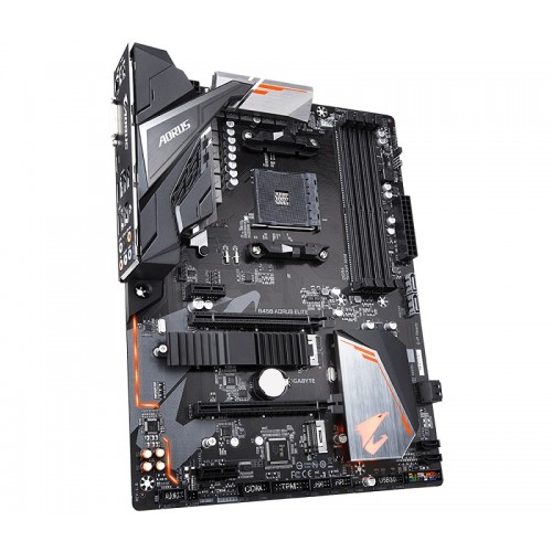 Gigabyte B450 AORUS ELITE ATX AMD AM4 socket ryzen series CPU supported Dual Channel DDR4 maximum 64GB memory motherboard has the capability of Dual Ultra-Fast NVMe PCIe Gen3 M.2 (x4, x2) with One Thermal Guard and RGB FUSION with Multi-Zone LED Light Show Design that supports Digital LED & RGB LED Strips. Considering the graphics, it will support HDMI, DVI-D Ports for Multiple Display having maximum resolution of 1920x1200@60 Hz for DVI-D & 4096x2160@60 Hz for HDMI and 1920x1200@60 Hz for DVI-D port. This High Quality Audio Capacitors and Audio Noise Guard with LED Trace Path Lighting motherboard has the facility of Exclusive 8118 Gaming LAN with Bandwidth Management with Smart Fan 5 Features 6 Temperature Sensors and 4 Hybrid Fan Headers with FAN STOP and APP Center Including EasyTune™ and Cloud Station™ Utilities. This Integrated I/O Shield of Ultra Durable™ Design board has CEC 2019 Ready for saving Power with a Simple Click.
