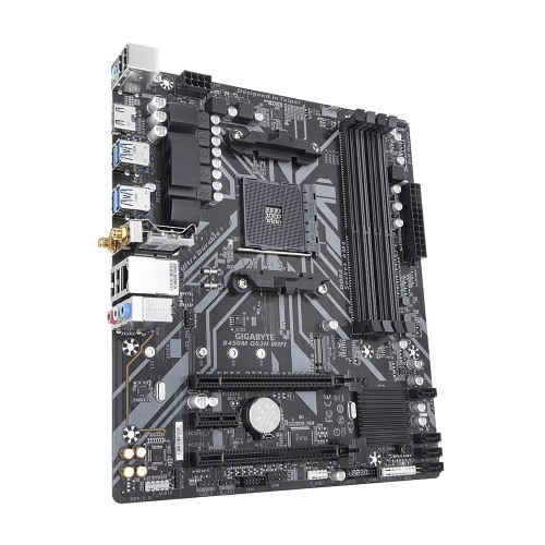 GIGABYTE B450M DS3H WIFI Supports with AMD Ryzen 5000 series / Ryzen 5000 G-Series/ 3rd Gen Ryzen/ 2nd Gen Ryzen/ 1st Gen Ryzen/ 2nd Gen Ryzen with Radeon Vega Graphics/ 1st Gen Ryzen with Radeon Vega Graphics/ Athlon with Radeon Vega Graphics Processors and Dual Channel Non-ECC Unbuffered DDR4, 4 DIMMs. This motherboard featured with Intel Dual Band 802.11ac WIFI & BT 4.2. The onboard 802.11ac WIFI module from Intel supports Dual Band and up to 433 Mbps, 3x faster WIFI speed which is faster than 802.11n and also support BLUETOOTH 4.2. The GIGABYTE B450M DS3H WIFI comes with Ultra-Fast PCIe Gen3 x4 M.2 with PCIe NVMe & SATA mode support, High Quality Audio Capacitors and Audio Noise Guard Design, RGB FUSION 2.0 with Addressable RGB & RGB LED Strips Support, Realtek Gigabit LAN with cFosSpeed Internet Accelerator Software, Smart Fan 5 Features 5 Temperature Sensors and 2 Hybrid Fan Headers with FAN STOP, APP Center Including EasyTune and Cloud Station Utilities and also has CEC 2019 Ready, Save Power with a Simple Click. Here, GIGABYTE M.2 solution offers considerably faster storage performance and also support for PCIe and SATA interfaces for M.2 SSD devices. With the Smart Fan 5, Gamers can ensure that their gaming PC can maintain its performance while staying cool. Smart Fan 5 allows users to interchange their fan headers to reflect different thermal sensors at different space on the motherboard. By equipping resistors with an Anti-Sulfur Design GIGABYTE B450M DS3H WIFI gives Ultra Durable Motherboards a whole new meaning. This latest GIGABYTE B450M DS3H WIFI offeres 03 years warranty.