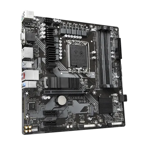 The GIGABYTE B760M DS3H AX DDR4 is a mATX motherboard that supports Intel Socket LGA 1700 and 13th and 12th Gen Intel Series Processors. This 14th Gen Motherboard has an unrivaled Hybrid 6+2+1 Phases Digital VRM Solution. It also includes dual-channel DDR4 memory with four DIMM slots that support XMP memory modules. This motherboard provides next-generation storage solutions with two PCIe 4.0 x4 M.2 ports. M.2 Thermal Guard is provided to guarantee that M.2 SSD performance is optimal. In addition, the motherboard has an EZ-Latch PCIe 4.0x16 slot with a rapid-release design. It includes a 2.5GbE LAN and Wi-Fi 6E 802.11ax for fast networks. The motherboard's rear panel provides additional connectivity options, including USB-C 10Gb/s, DP, and HDMI. Smart Fan 6 has many temperature sensors as well as hybrid fan headers with FAN STOP. Finally, the Q-Flash Plus functionality enables BIOS upgrades without the need for the CPU, RAM, or graphics card to be installed.