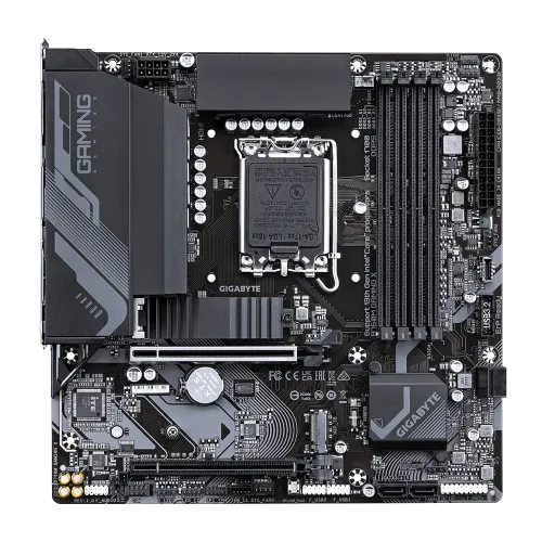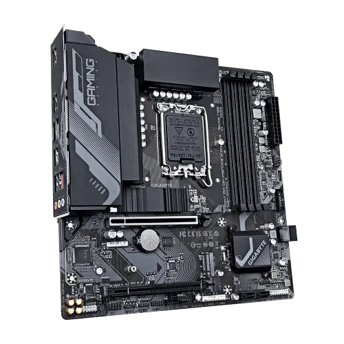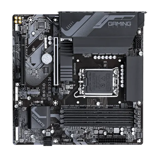 The GIGABYTE B760M GAMING X is a high-performance motherboard designed for gaming enthusiasts and power users. It supports both 14th 13th and 12th-generation Intel processors with its LGA 1700 socket, ensuring compatibility with the latest CPU technologies. This motherboard is its Hybrid 8+1+1 Phases Digital VRM solution, which provides exceptional power delivery and stability for optimal performance. This ensures that the motherboard can handle demanding tasks and overclocking without any issues. The motherboard supports Dual Channel DDR5 memory, allowing for faster data transfer rates and improved multitasking capabilities. With four DIMM slots and XMP memory module support, users can easily install and configure high-speed RAM for smooth and responsive system performance. The GIGABYTE B760M GAMING X motherboard. It features two PCIe 4.0 x4 M.2 connectors, enabling lightning-fast storage solutions. Additionally, the motherboard incorporates an advanced thermal design and M.2 Thermal Guard to maintain VRM power stability and optimize M.2 SSD performance, preventing thermal throttling and ensuring reliable operation. The EZ-Latch feature of the PCIe 4.0x16 slot allows for easy installation and removal of graphics cards, making it convenient for users who frequently upgrade their GPUs. The 14th Gen Motherboard provides a front USB-C® port with a 10Gb/s transfer speed, as well as DisplayPort (DP) and HDMI ports for multiple display setups. This allows users to connect various peripherals and external devices with ease. The Smart Fan 6 feature is designed to keep the system cool and quiet. It includes multiple temperature sensors and hybrid fan headers with FAN STOP technology, enabling precise control over fan speeds and optimizing cooling performance while minimizing noise levels. The Q-Flash Plus, allows users to update the motherboard's BIOS firmware without the need to install the CPU, memory, and graphics card. This feature provides a convenient and hassle-free method for keeping the system up to date with the latest firmware releases. The GIGABYTE B760M GAMING X motherboard offers a comprehensive range of features and technologies for gamers and power users seeking exceptional performance, reliable connectivity, and convenient upgradability.