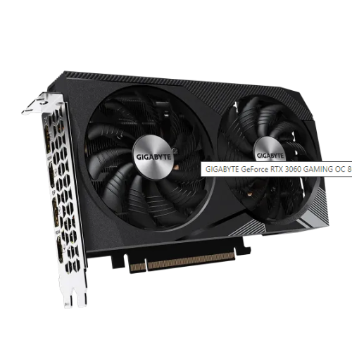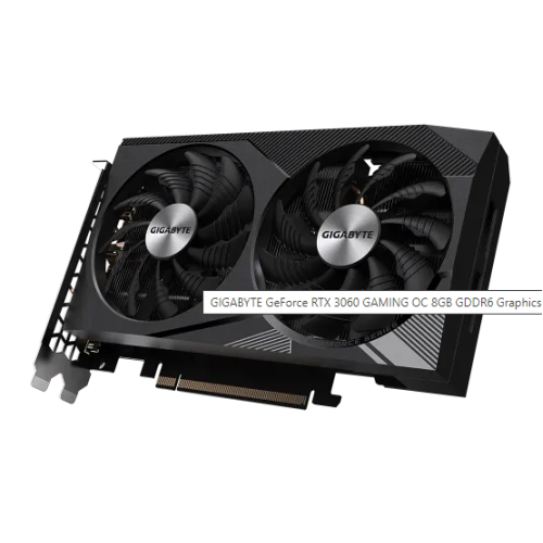 GIGABYTE GeForce RTX 3060 GAMING OC 8GB GDDR6 Graphics Card is a formidable addition to any gaming rig, designed to deliver exceptional performance and immersive gaming experiences. Powered by NVIDIA's GeForce RTX 3060 GPU, this card boasts 8GB of GDDR6 memory, providing ample capacity for smooth gaming and multitasking. With a maximum resolution of 7680x4320, this graphics card ensures stunning visuals and crisp details, whether you're gaming on a high-resolution monitor or engaging in content creation tasks. The core clock speed of 1807 MHz, slightly higher than the reference card's 1777 MHz, ensures snappy performance and fluid gameplay in even the most demanding titles. Equipped with 3584 CUDA Cores and a 128-bit memory bus, the GIGABYTE RTX 3060 GAMING OC delivers impressive graphics processing power, allowing for realistic lighting, shadows, and effects in games. The card features a Memory Interface PCI-E 4.0, enabling high-speed data transfer between the GPU and memory for improved performance and responsiveness. With two DisplayPort 1.4a and two HDMI 2.1 ports, this card offers versatile connectivity options, supporting multiple displays for enhanced productivity or immersive gaming setups. The GIGABYTE RTX 3060 GAMING OC is designed for efficiency, requiring only a single 8-pin power connector and a minimum power supply of 550W. This ensures stable and reliable power delivery, even during intense gaming sessions or overclocking.